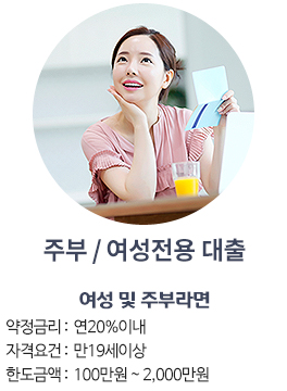 제공업체:㈜케이엠파이낸셜서비스대부,(주)스타크레디트대부,(주)밀리언캐쉬대부,(주)유아이크레디트대부,(주)골든캐피탈대부,(주)드림앤캐쉬대부,주식회사 미래크레디트대부,아이앤유크레디트대부(주),(주)안전대부,앤알캐피탈대부(주),(주)어드벤스대부,(주)엘하비스트대부,(주)엠케이캐피탈대부,(주)오케이파이낸셜대부,(주)유노스프레스티지대부,(주)티플레인대부